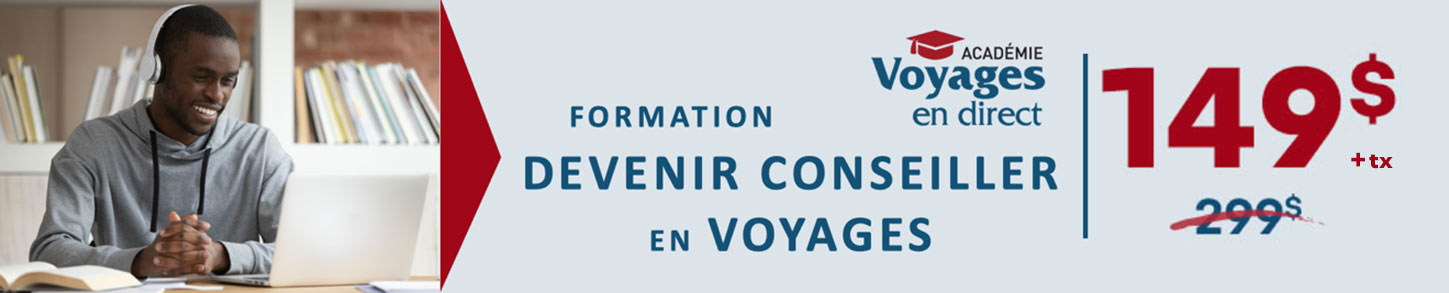 Ce cours vous permettra d’acquérir toutes les bases nécessaires pour occuper le poste de conseiller au sein d’une agence de voyages. Vous passerez au travers de plusieurs modules à thème où vous ferez l’apprentissage des différents produits pouvant être vendus via une agence de voyages, les outils à votre disposition, les lois régissant l'industrie du voyage et plus encore. Évidemment, tout au long de cette formation, on vous donnera des trucs et astuces d’expert afin que vous puissiez à votre tour en devenir un.