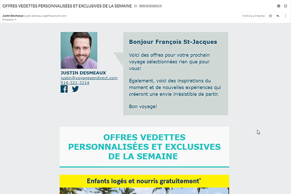 - Infolettre au nom du conseiller envoyée aux clients du conseiller par le réseau VED