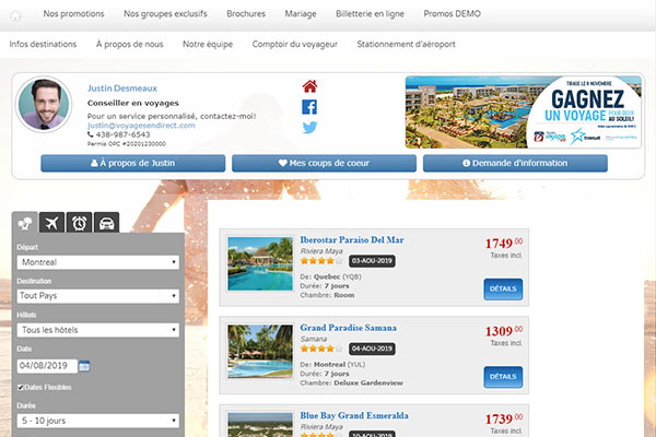 - Module croisières bilingue unique dans le domaine permettant une recherche facile et la conception de soumissions personnalisées pour le client